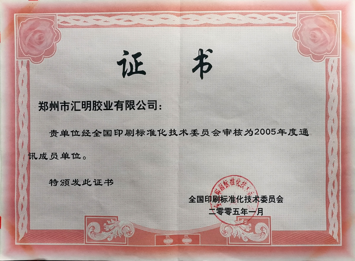 全國印刷標準化技術委員會審核為2005年度通訊成員單位